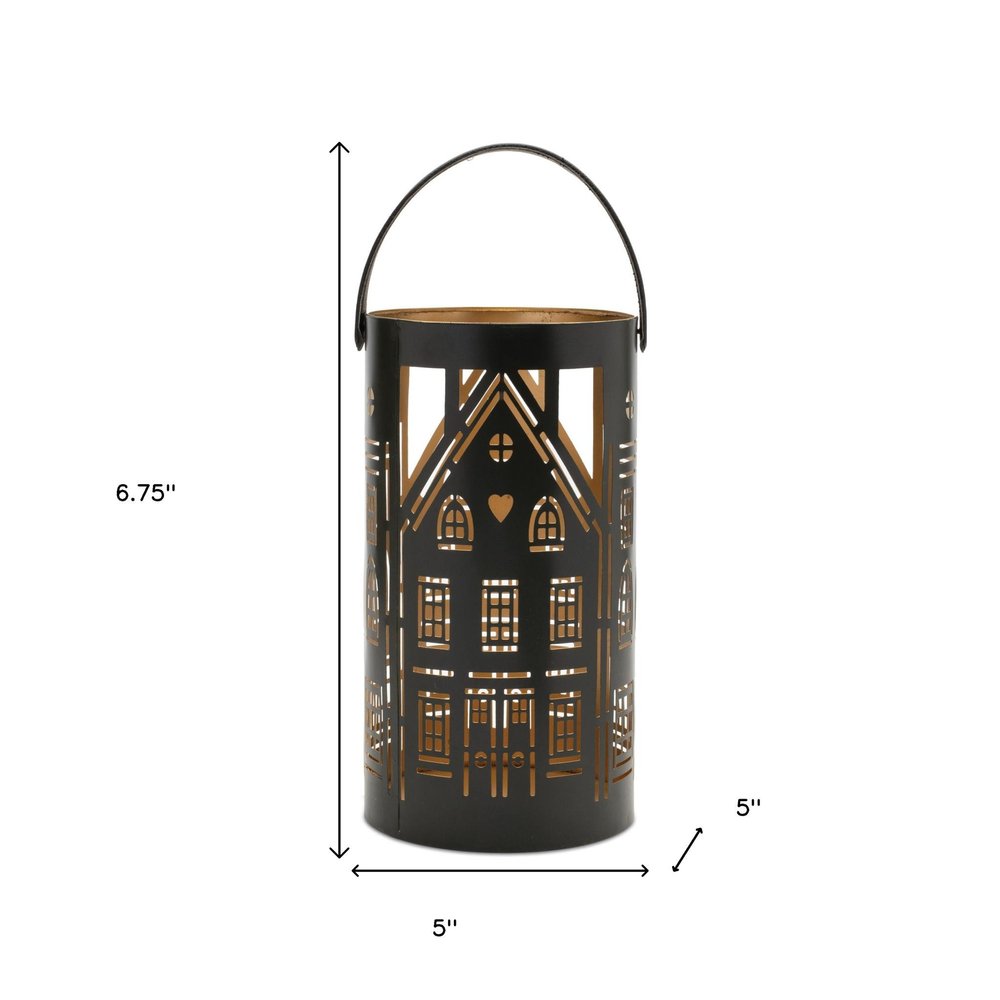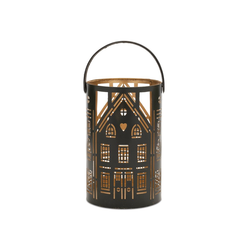 Bring the romantic glow of candlelight to your tabletop with this set of three black and gold hammered glass tabletop pillar candle holders arriving in a set of 3 these candleholders create a well-lit centerpiece for any table setting. This candleholder is the perfect illuminating design to accent your space in style. Candleholders are a decorative accent on their own. With our without candles. 6.75-inch h x 5.00-inch w x 5.00-inch d.