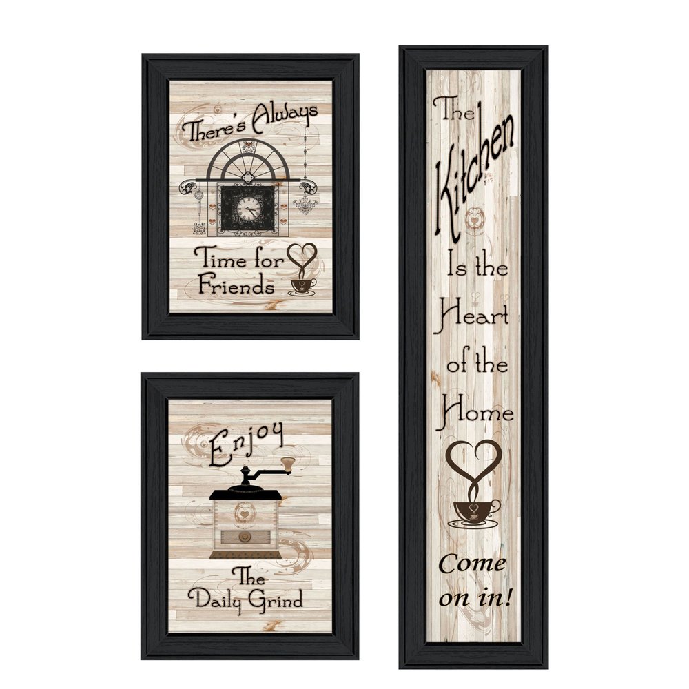 This set of three the kitchen collection i 2 black framed print kitchen wall art will add a beautiful decorative accent to your decor. This print is a visual artistic expression that allows you to decorate your space in style. Reproduced for you on paper, this hanging decorative accent will be a trendy and fashionable way to dress your walls. Adding this hanging wall art to your space to make your room feel more finished and attractive. Utilize this opportunity to create a focal point in the room with this fabulous wall decor option. 32-inch H x 10-inch W x 1-inch D