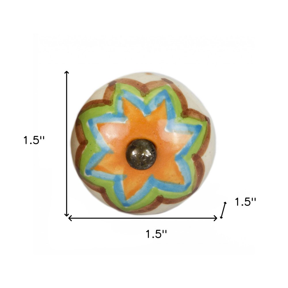 Upgrade your space with a high end look with this set of twelve green and white floral ceramic drawer pull knobs. Improve the look of your old boring or builder grade furniture and cabinetry with these high quality round knob traditional style knobs. Hand-painted by talented artisans, these knobs will add a touch of artisanal design. 1.5-inch h x 1.5-inch w x 1.5-inch d.