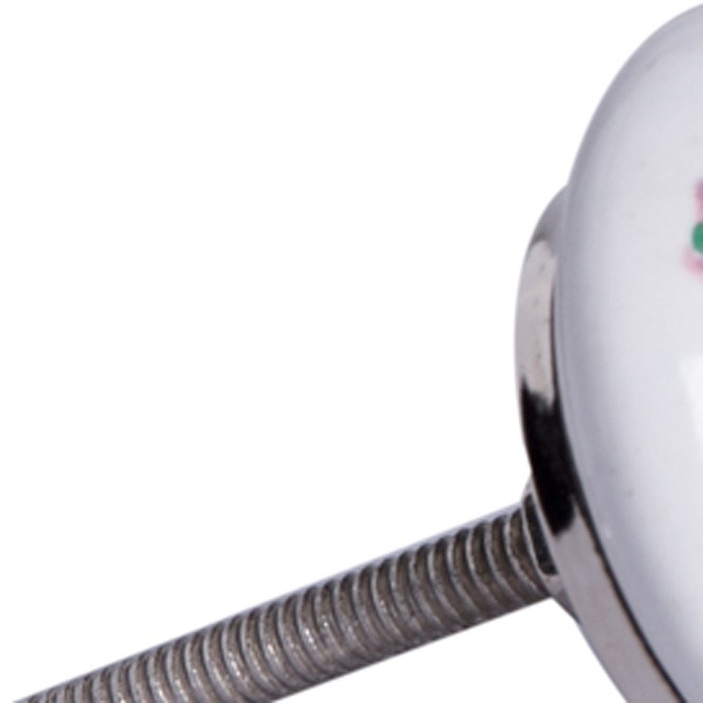 Transform your space quickly and easily with this set of twelve pink white and green floral ceramic drawer pull knobs. A favorite of designers and diyer's alike, these high quality round knob traditional style knobs are versatile in use and will change up the look of your existing furniture and cabinetry in a snap. Hand-painted by talented artisans, these knobs will add a touch of artisanal design. 1.5-inch h x 1.5-inch w x 1.5-inch d.