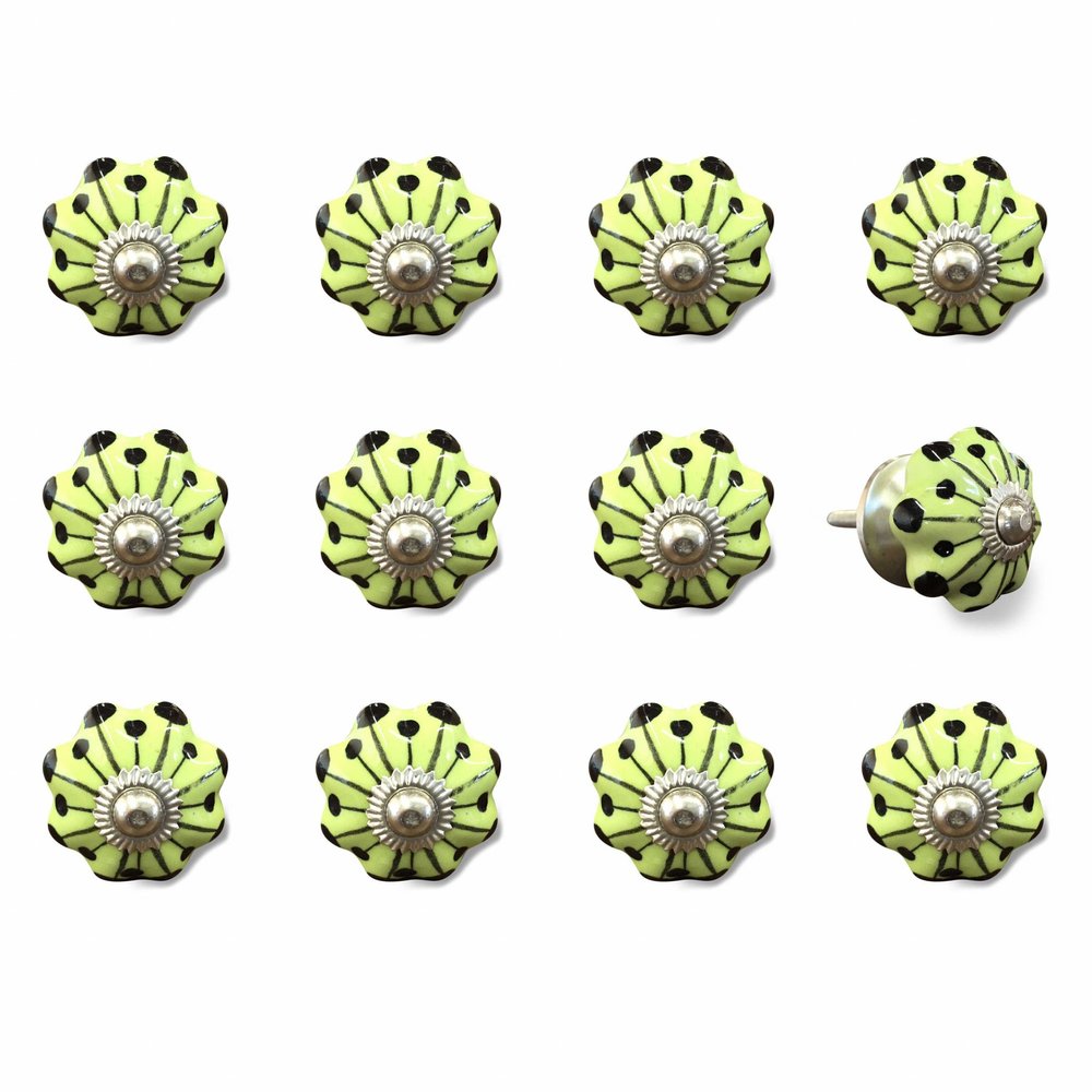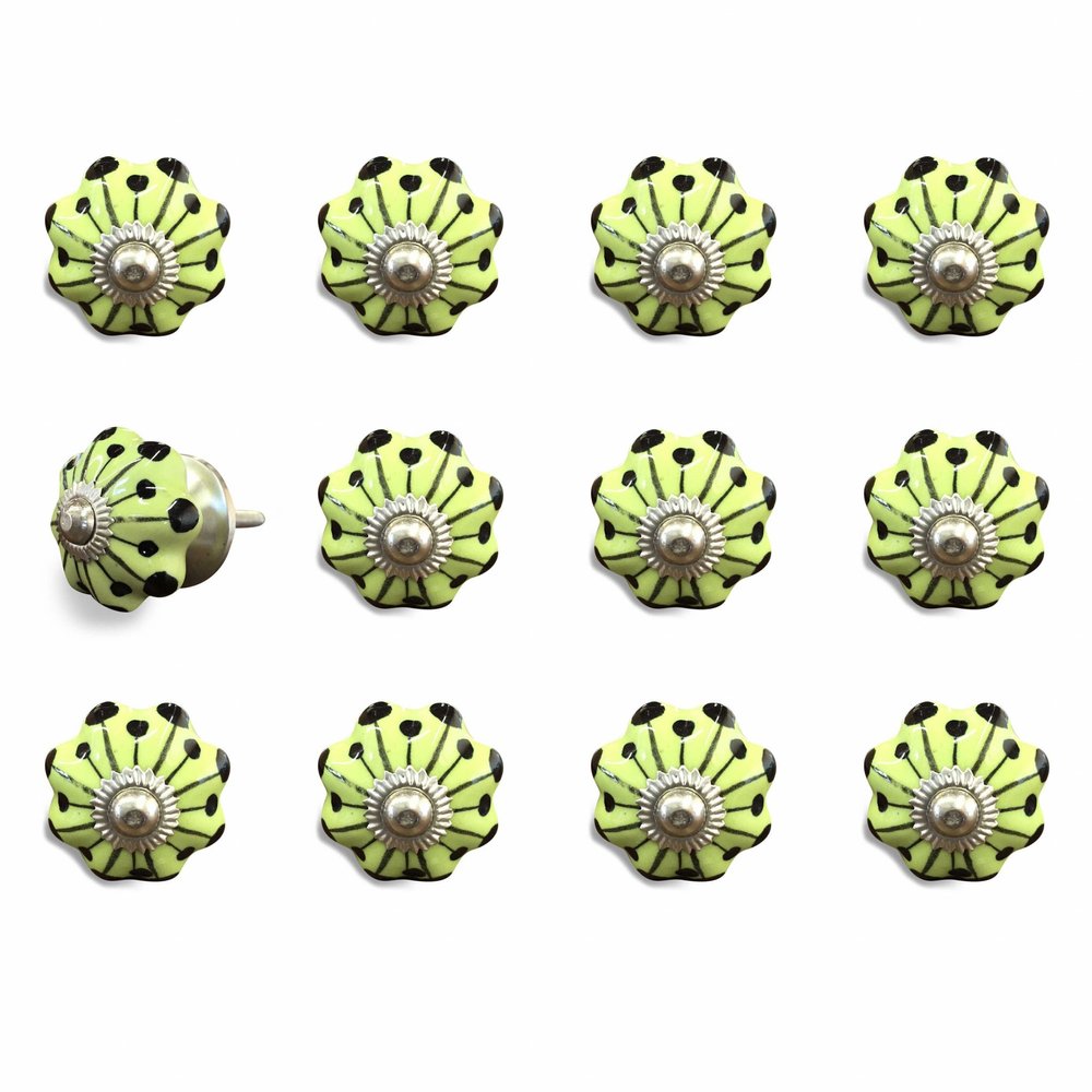 Creatively adorned with bright hues of colors, our 12 pack knobs will suitably accent any furniture in the home. Add a classic touch to your room decor with these ornate pieces that are artfully hand-painted by our skilled artisans. Whether you want them on your doors, drawers, cabinets or wardrobes, these charming knobs are designed to perfectly anchor your living space with an enduring style. Each of these chic knobs comes with a bolt that can be cut to size to fit into any furniture piece, making it highly multi-functional. Available in assorted colors.