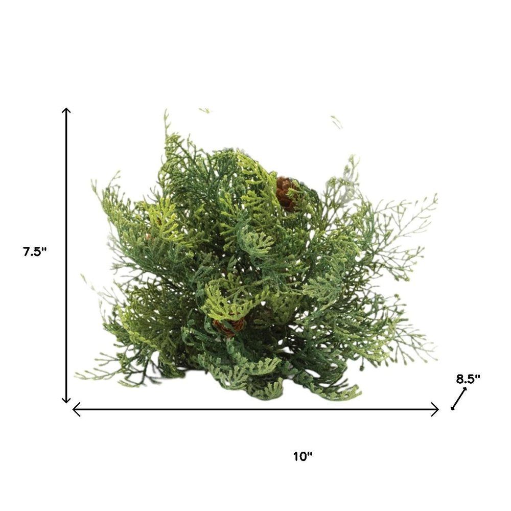 Set of two 10-inch brown and green artificial cedar brings a touch of nature to your indoor spaces. Perfect for tabletop arrangements, these artificial trees mimic the beauty of real cedars without the maintenance. Crafted from durable plastic, they feature a stunning blend of brown and green hues that will enhance any decor style. Ideal for harvest-themed celebrations or simply to add a seasonal flair to your home, this set of two ensures a lush look without the worry of fading or wilting. These versatile pieces can be placed together for a fuller effect or separately to create balance in different areas of your space. Enjoy the beauty of greenery year-round with this delightful pairing. 7.50-inch h x 10.00-inch w x 8.50-inch d.