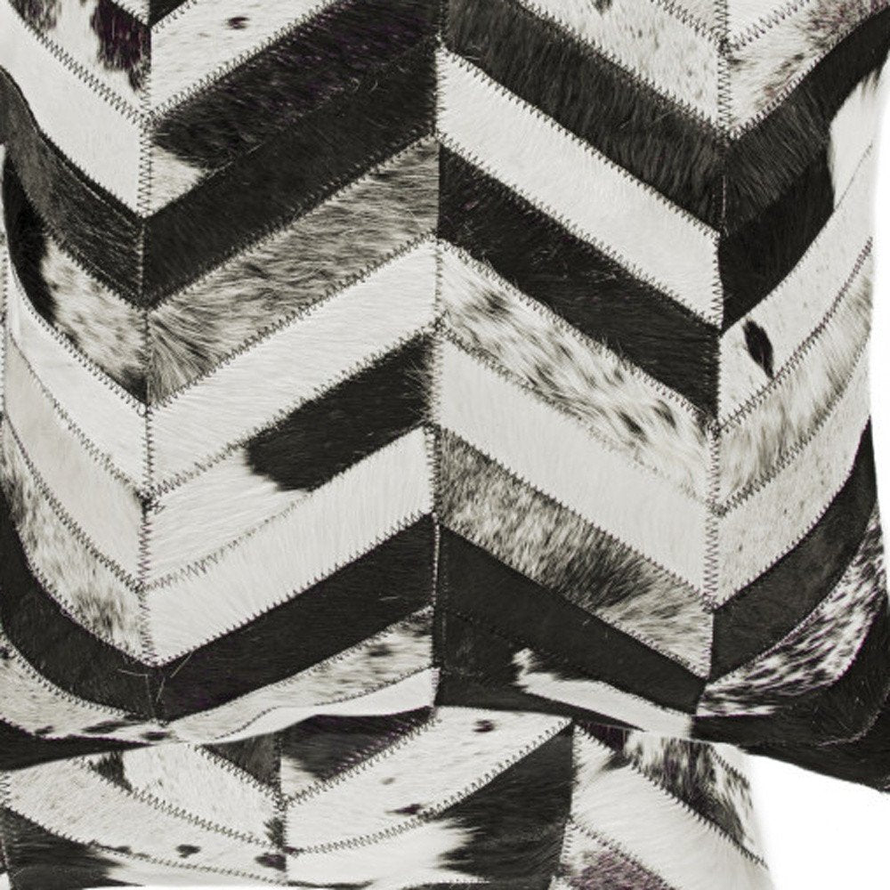 Set of Two 18" Black and Natural Chevron Cowhide Throw Pillows