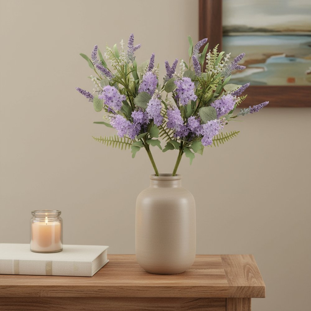 Set of Two 23" Purple And Green Artificial Flowering