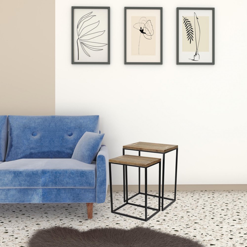 Optimize your space with the set of two 24" black and brown solid wood and steel rectangular nested tables that nest into each other easily and fashionably when not in use. Quality construction from the black steel base combines with brown solid wood of the top to give this table a fresh and updated look. Side tables are a great way to flank your sofa, use as an accent next to your favorite chair, or can even be used bedside. You can also use it as an entryway table to hold your keys. 24" H x 18.5" W x 13" D