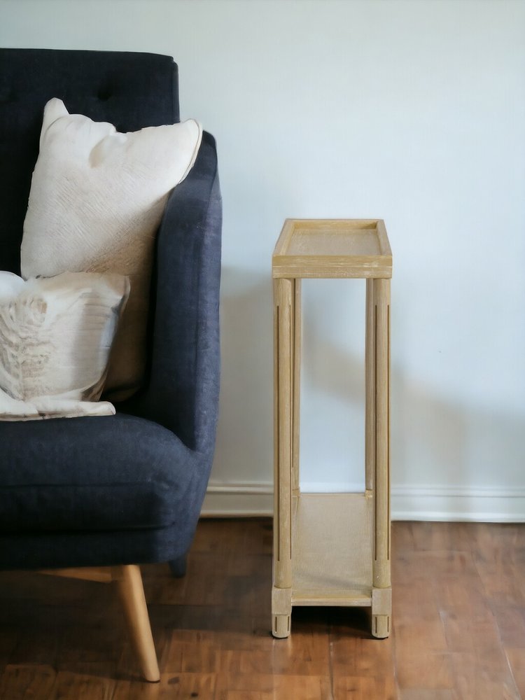 Increase your decorating options with this set of two 24-inch natural oak brown finish wood rectangular end tables with shelf that will enhance your space. This pair makes the ideal companion for flanking the sofa or bed and can be used together or separately as you choose. The purposefully distressed finish gives these solid wood tables an authentically rustic feel. Includes a single shelf for handy storage or display space. This versatile table set is a great accent for most any room. 24-inch H x 22-inch W x 8-inch D