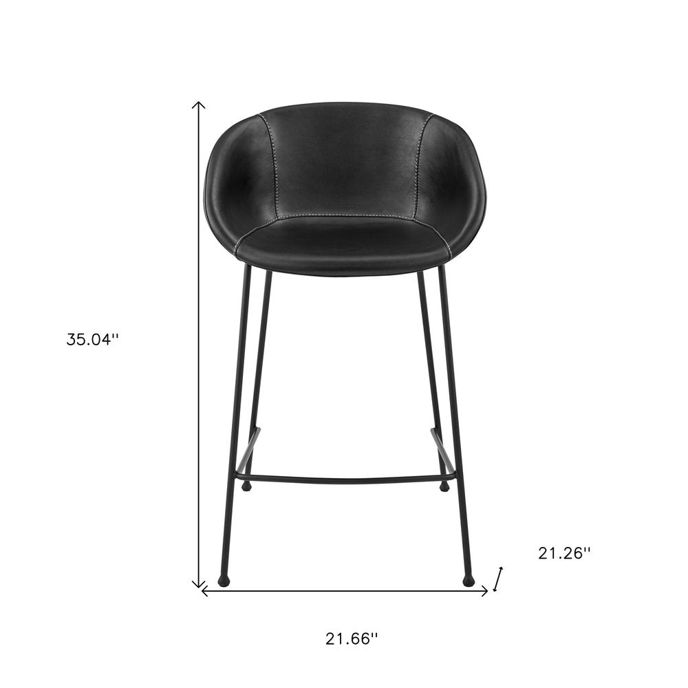 With this set of two 26-inch black faux leather and steel low back counter height bar chairs you can add design and extra seating to your space. A solid black steel frame is finished off with a matching black faux leather seat, giving this chair a chic monotone look. Not only good looking and stylish, this chair features a rectangle shaped seat and a low back for the ultimate in comfort and enjoyment. Designed with armrests for your comfort, this chair also features a footrest for comfort and convenience. 35.04-inch H x 21.66-inch W x 21.26-inch D