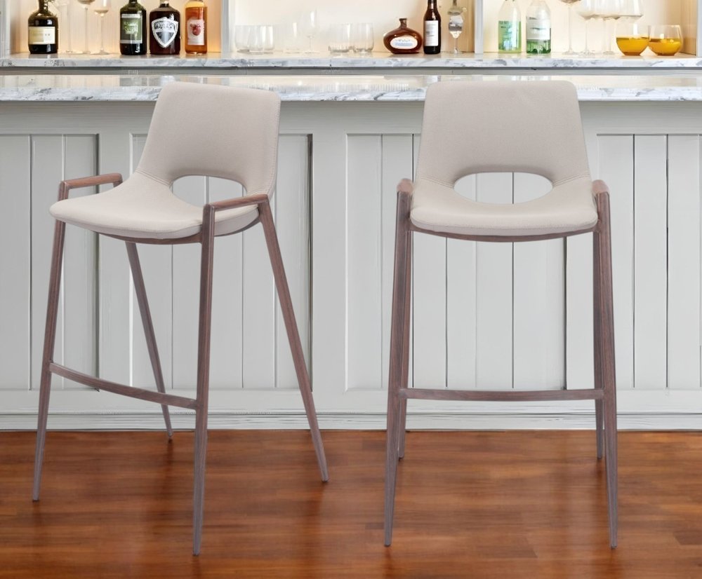 Set of Two 29 " Beige And Brown Steel Low Back Bar Height Bar Chairs