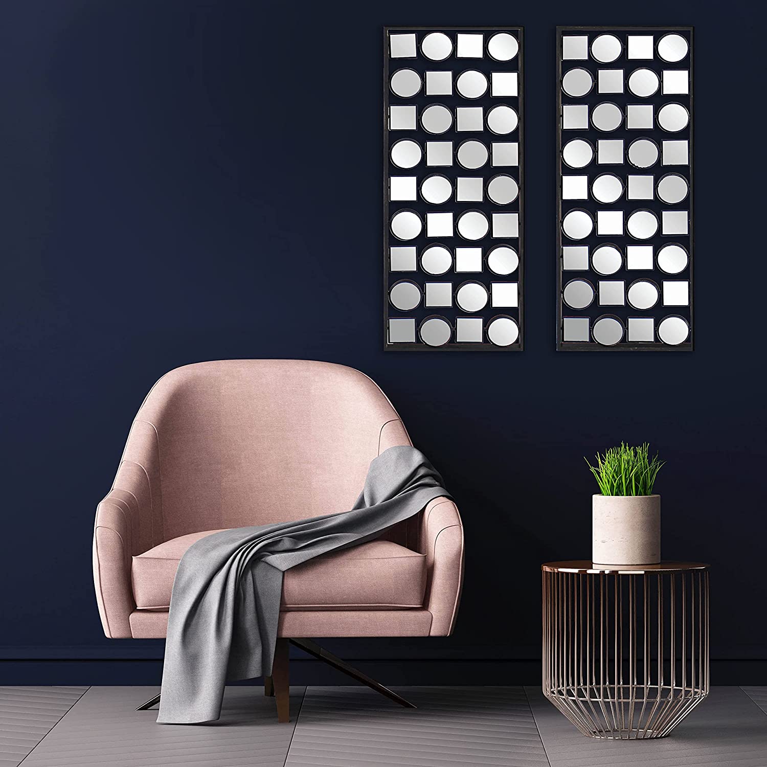 This set of two 30-inch x 12-inch bronze mirrored metal abstract wall decor will add a beautiful decorative accent to your decor. The surface of this artwork is mirrored, giving it a unique and reflective appearance. Adding this hanging wall art to your space to make your room feel more finished and attractive. Instantly liven up your space with this art that brings color and dimension to your walls. 30-inch H x 12-inch W x 1-inch D