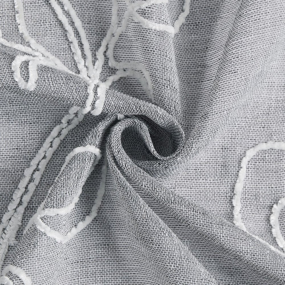 Set of Two 84" Silver Boho Embroidered Window Panels
