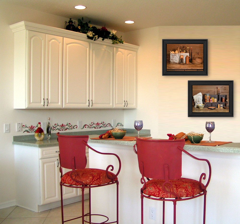 The set of two baking supplies black framed print wall art is the perfect decorative accessory for your home. This print is a visual artistic expression that allows you to decorate your space in style. Reproduced for you on paper, this hanging decorative accent will be a trendy and fashionable way to dress your walls. Hang on your wall to add some up to date fashion and decoration. Instantly liven up your space with this art that brings color and dimension to your walls. 14-inch H x 36-inch W x 1.5-inch D