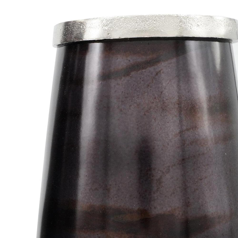 Get ready to accent your space in style with this set of two black and blue abstract glass cylinder floor vases. Crafted from high-quality glass, these vases showcase a stunning contemporary design that enhances any decor. The unique abstract pattern is topped with a metallic rim that adds a touch of elegance, making them perfect for displaying fresh or dried flowers. Their tall, cylindrical shape provides a striking focal point in your living room, hallway, or entryway. With two pieces included, you can create a balanced and harmonious look that showcases your personal style while also serving as eye-catching decorative elements in your home. 28.70-inch h x 16.00-inch w x 9.00-inch d.