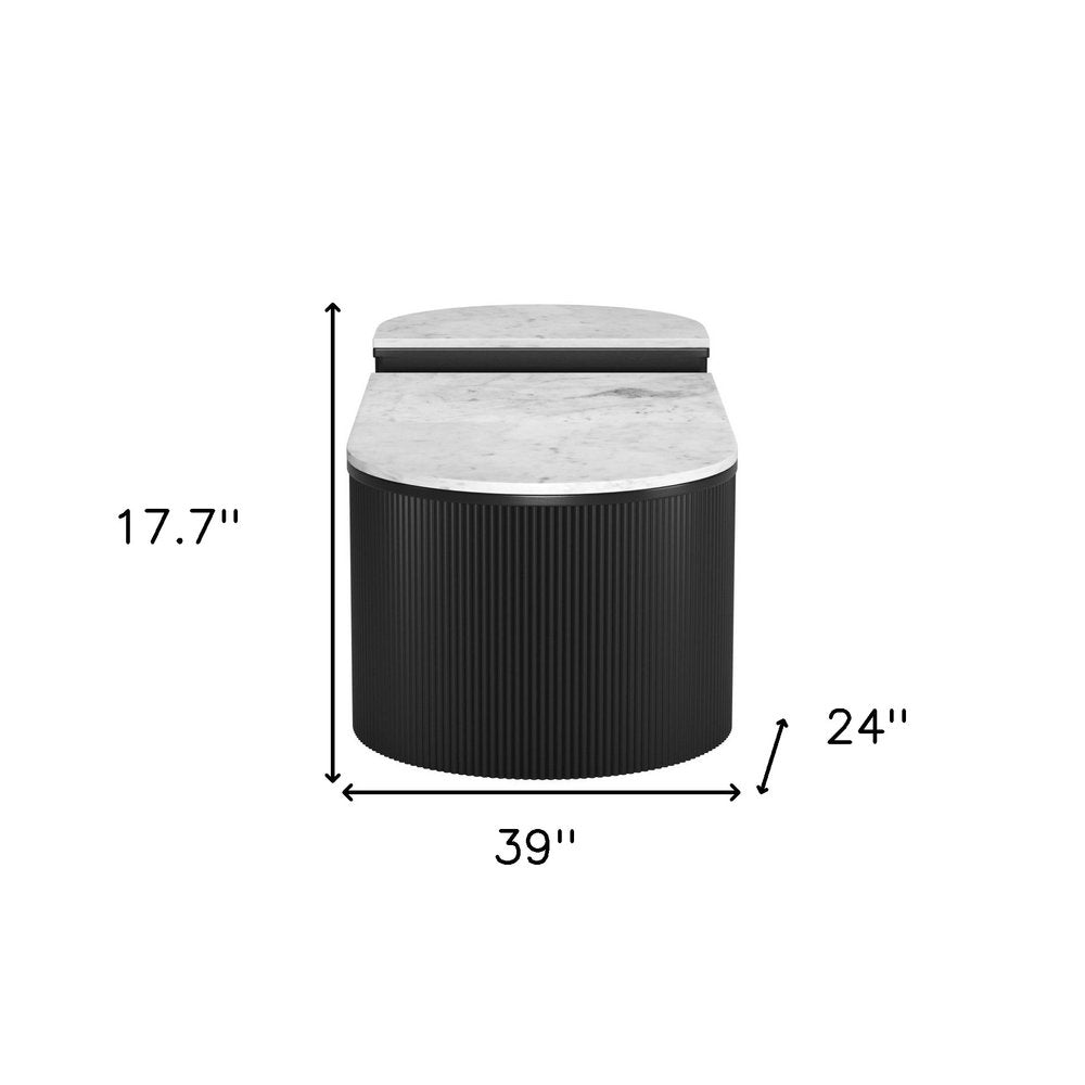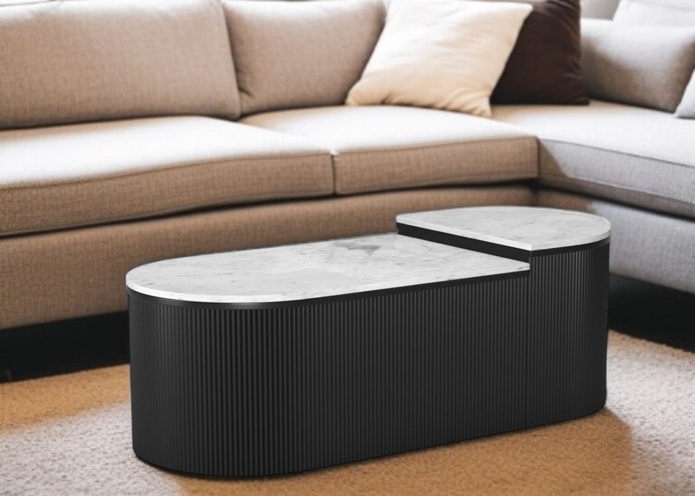 Increase your decorating options with this set of two black and white wood and faux marble oval drum bunching coffee tables that will enhance your space. This pair can be pushed together to make a single table or used separately as you choose. Quality construction from the black solid wood base combines with white genuine marble of the top to give this table a fresh and updated look. This oval table is an updated take on a classic. If you're looking for something that can fit into a living area, bedroom, or office, this coffee table is for you. 17.7-inch h x 39-inch w x 24-inch d.