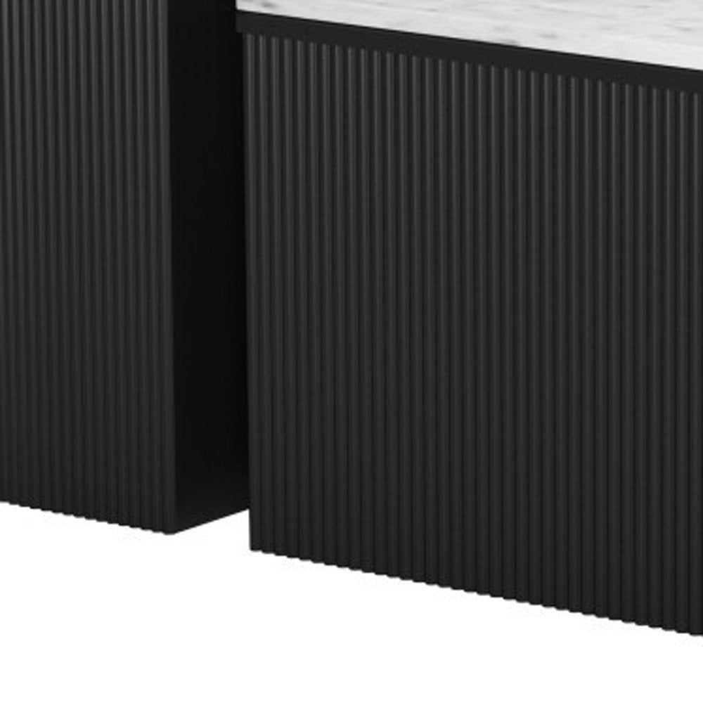 Set of Two Black And White Wood And Faux Marble Oval Drum Bunching Coffee Tables