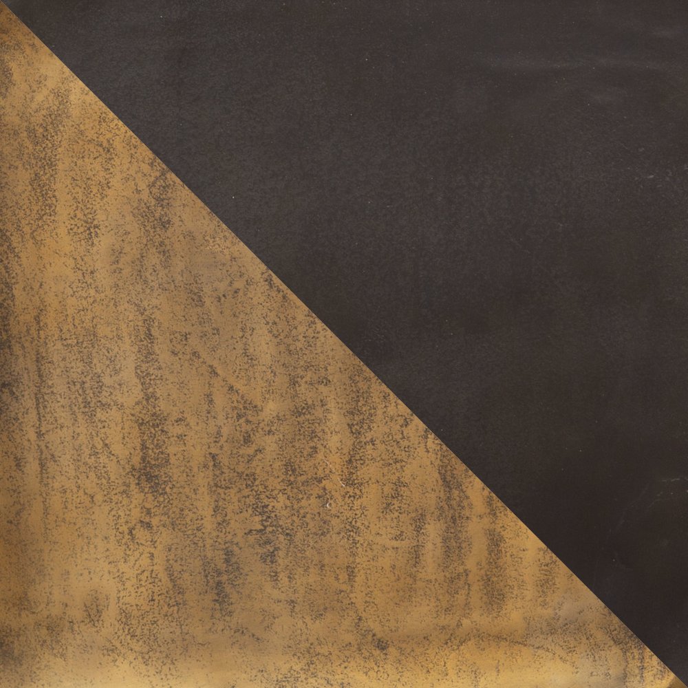 Increase your decorating options with this versatile set of two black silver and antiqued brass aluminum square block end tables. This pair makes the ideal companion for flanking the sofa or bed and can be used together or separately as you choose. This unique set is made from aluminum with organically styled painted surfaces in antiqued brass and black with silver. Complete with a purposefully distressed finish, these tables have an aged, vintage, and industrial rustic feel. An ideal location for placing your snacks and drinks, and a place to keep your lamp, frames, or other accessories.