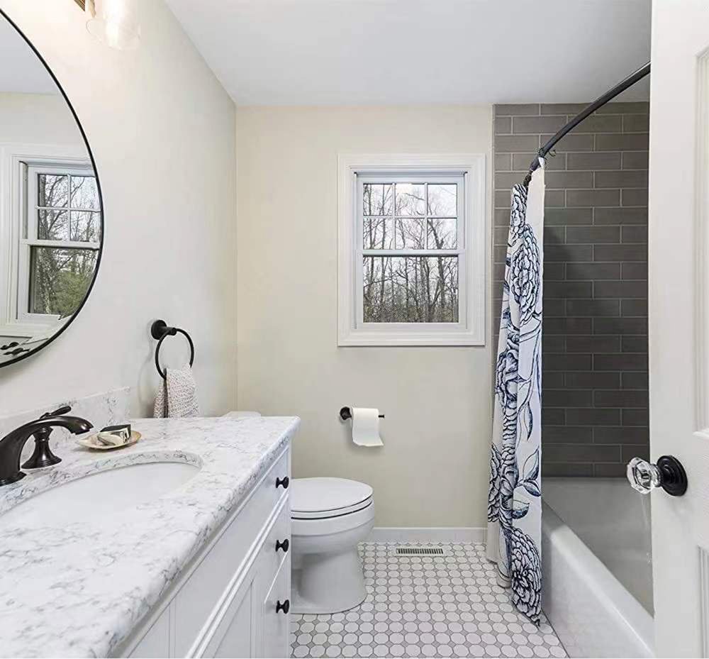 Enhance your bathroom decor with this sleek set of two black stainless steel wall mount towel ring and toilet paper holder, perfect for a modern style. The wall-mounted design is easy to install and provides convenience and functionality in a cohesive look. Upgrade your bathroom with this matte black set that combines practicality with a clean and modern aesthetic. 7-inch H x 7-inch W x 3-inch D