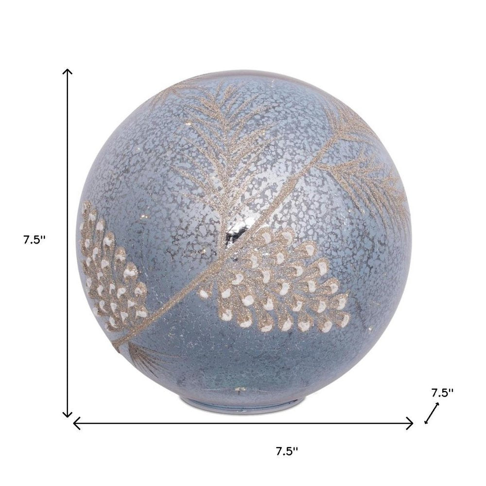 The set of two blue and gray glass pinecone tabletop sculpture with led is the perfect decorative accessory for your home. This great accent will bring a sense of earthiness and nature to your space. Led light provides an illuminating effect that adds to the decorative appeal of this special piece. A perfect decorative addition for anyone who loves a stylish look and feel. 7.50-inch h x 7.50-inch w x 7.50-inch d.