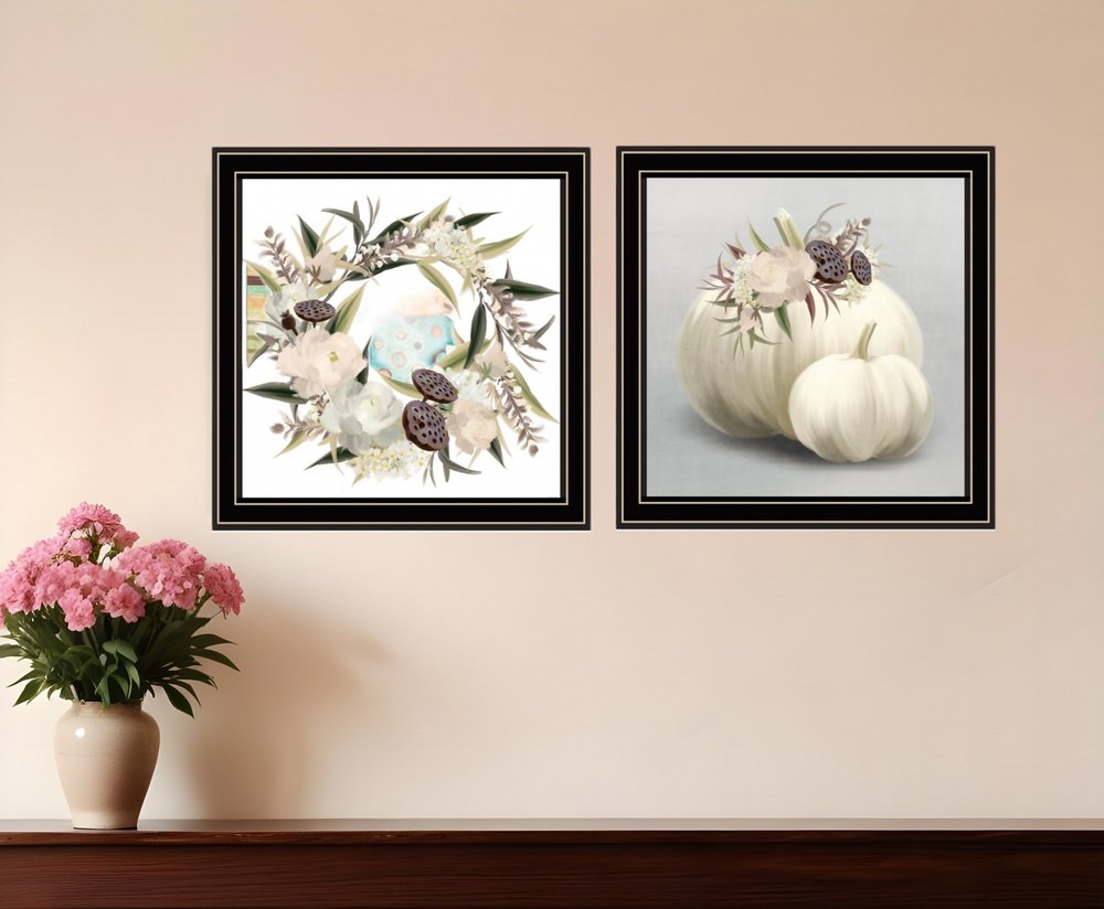 Set Of Two BOHO Pumpkins and Flowers 1 Black Framed Print Wall Art
