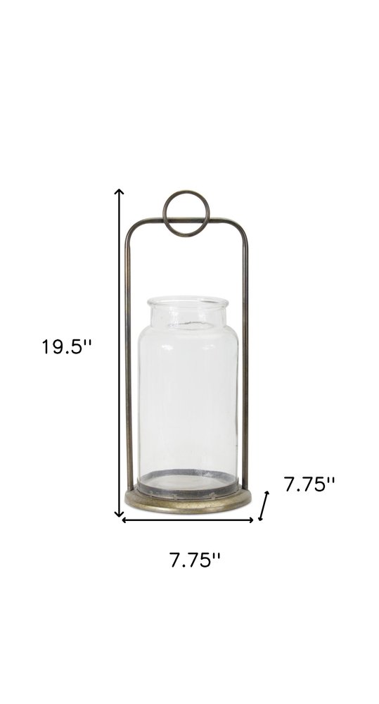 This set of two bronze metal and glass tabletop hurricane candle holders is perfect for creating an elegant atmosphere on your tabletop or mantel. Dress up your home to impress every season with this fabulous candleholder. Candleholders are an attractive way to turn a simple candle into a piece of décor. 19.5-inch h x 7.75-inch w x 7.75-inch d.
