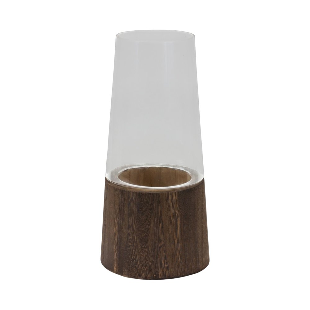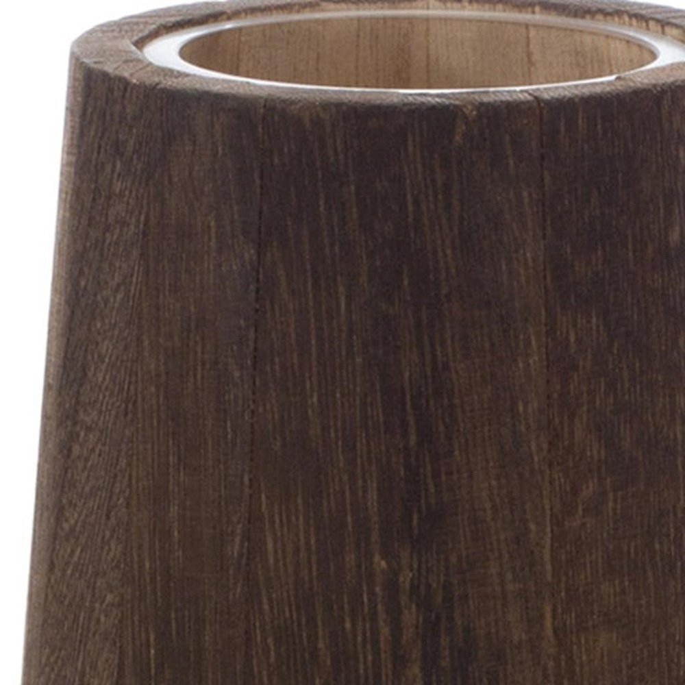 The set of two brown and clear round glass table vase beautifully enhances any space. Crafted from high-quality glass, this modern design adds a touch of elegance to your decor. The round shape provides a soft silhouette that complements various styling themes. With two pieces included, you can create visually appealing arrangements or spread them across different areas for a cohesive look. This versatile table vase can hold flowers or stand alone as a striking decor piece. Elevate your home’s ambiance with this stylish addition that offers both form and function. Perfect for dining tables, shelves, or entryways, it seamlessly blends into your existing decor while making a statement. 11-inch h x 5.5-inch w x 5.5-inch d.