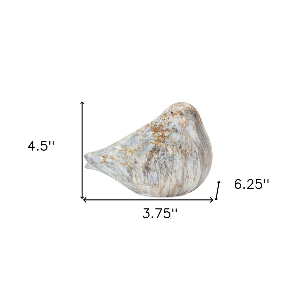 The set of two brown blue and ivory faux marble bird figurines is the perfect decorative accessory for your home. These pretty birds bring a touch of elegance and some outdoor beauty to your space. The birds are crafted from terra cotta clay ceramic and each feature a unique abstract marbleized glaze that create an eye-catching and unique display. 4.5-inch h x 3.75-inch w x 6.25-inch d.