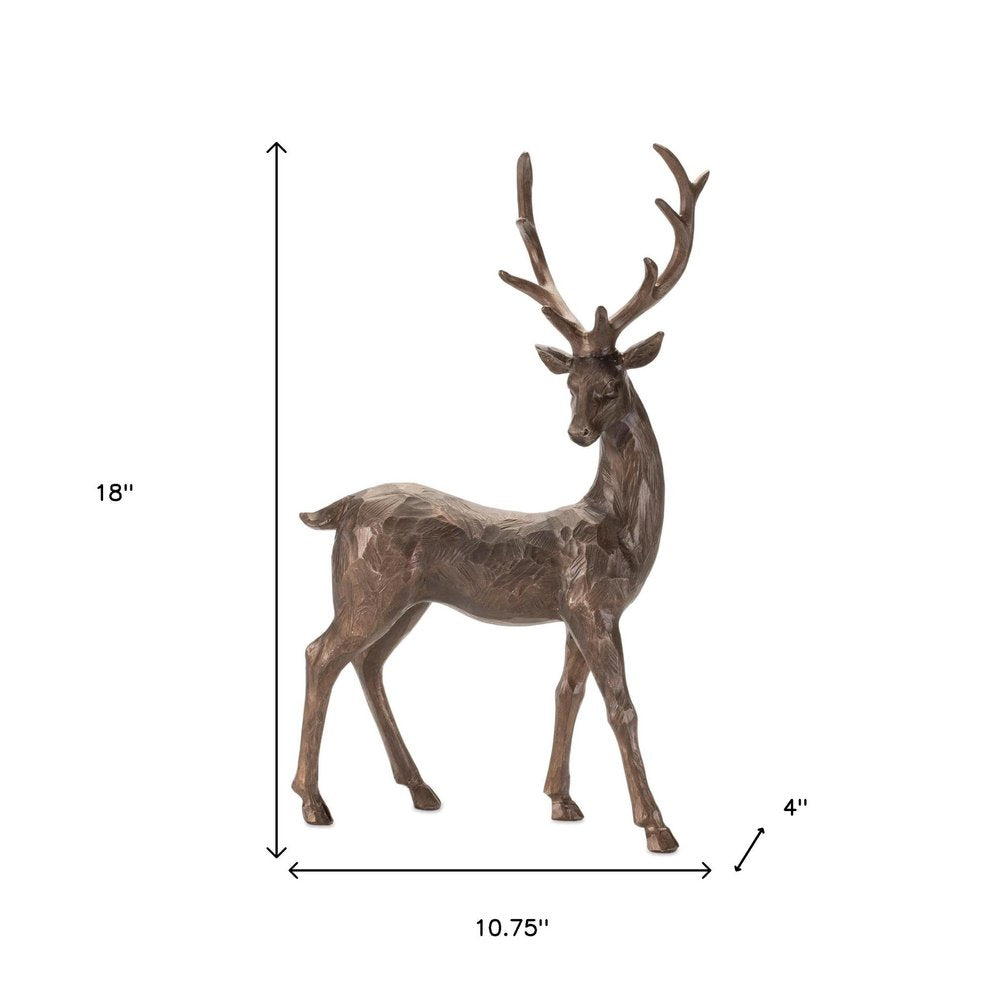 Unique and decorative, this set of two brown polyresin deer figurine will leave a lasting impression. Update your room with this woodland animal decor. A perfect decorative addition for anyone who loves a stylish look and feel. Crafted from durable polyresin, these machine-made sculptures showcase intricate details that highlight the elegance of nature. This charming set includes two pieces, making it an ideal choice for enhancing your home decor with a touch of wildlife charm. Embrace a refined aesthetic with these delightful figurines. 18.00-inch h x 10.75-inch w x 4.00-inch d.