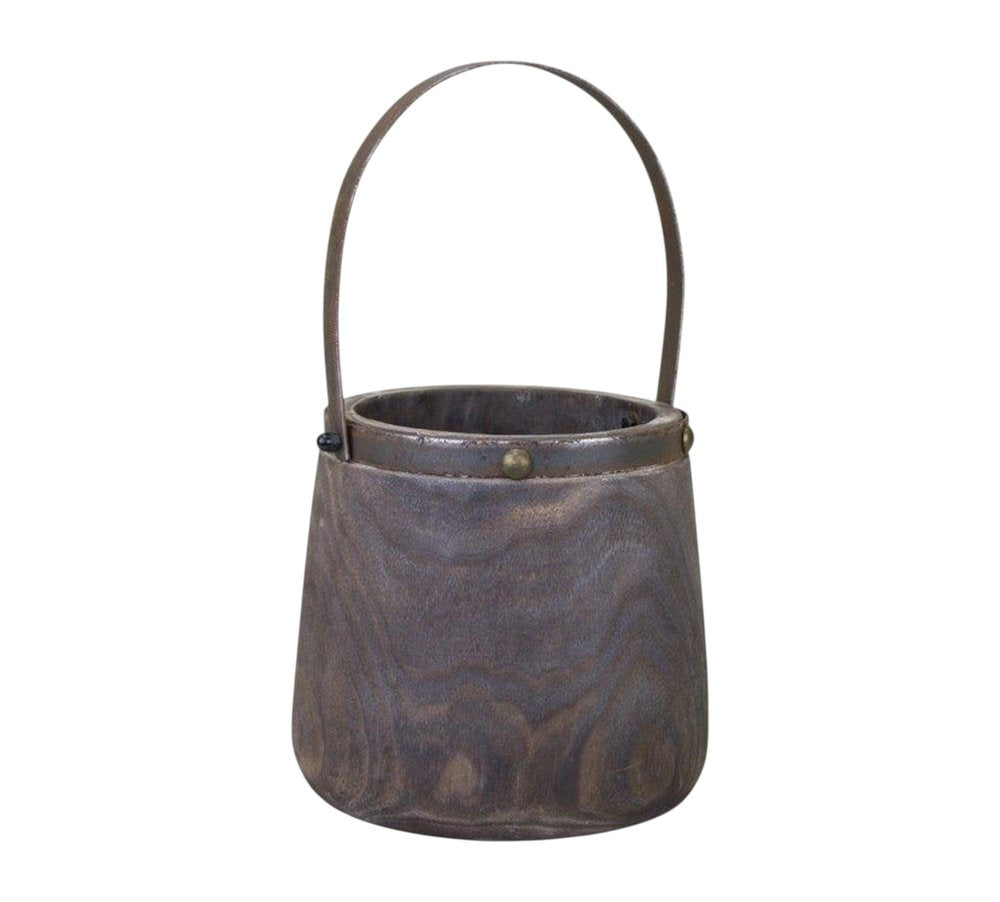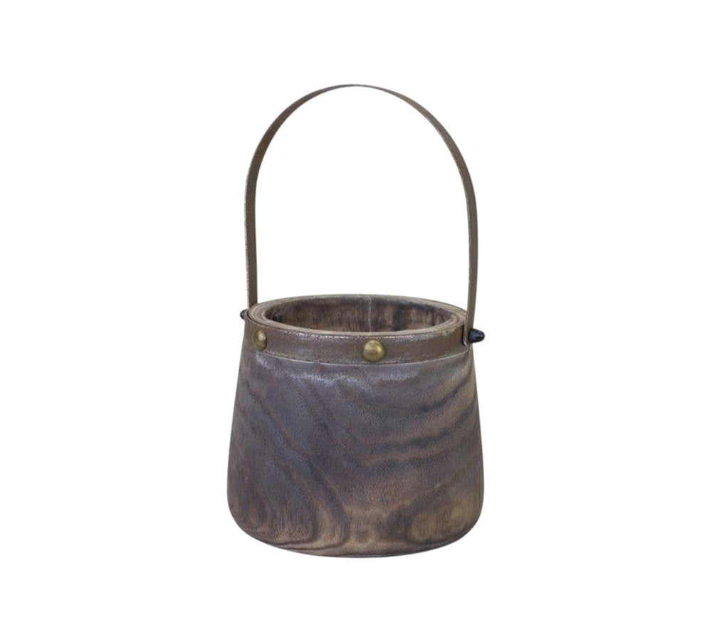 Set of Two Brown Wood Round Table Vases