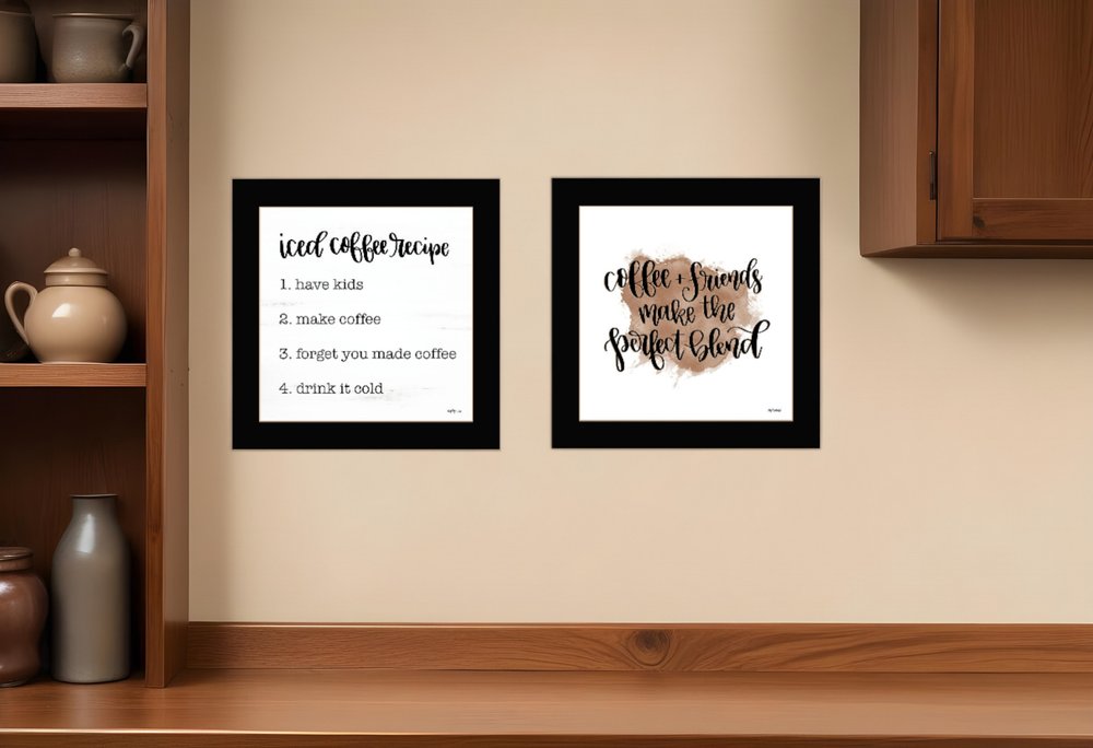 The set of two coffee and friends recipe black framed print kitchen wall art is the perfect decorative accessory for your home. This print is a visual artistic expression that allows you to decorate your space in style. Reproduced for you on wood, this hanging decorative accent will be a trendy and fashionable way to dress your walls in a rustic and modern farmhouse vibe. Adding this hanging wall art to your space to make your room feel more finished and attractive. Instantly liven up your space with this art that brings color and dimension to your walls. 29-inch H x 14-inch W x 1-inch D