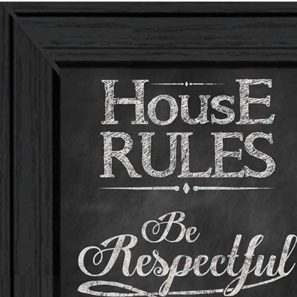 Bring some sizzle to your space with this eye-catching set of two family and house rules black framed print wall art. This print is a visual artistic expression that allows you to decorate your space in style. Reproduced for you on paper, this hanging decorative accent will be a trendy and fashionable way to dress your walls. Adding this hanging wall art to your space to make your room feel more finished and attractive. Utilize this opportunity to create a focal point in the room with this fabulous wall decor option. 39-inch H x 15-inch W x 1.5-inch D