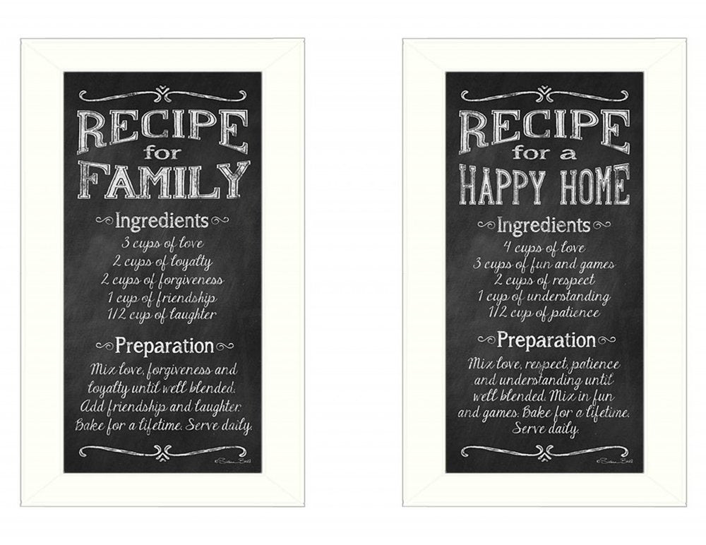 Unique and decorative, this set of two family recipe white framed print wall art will leave a lasting impression. This print is a visual artistic expression that allows you to decorate your space in style. Reproduced for you on paper, this hanging decorative accent will be a trendy and fashionable way to dress your walls. Hang on your wall to add some up to date fashion and decoration. Utilize this opportunity to create a focal point in the room with this fabulous wall decor option. 20-inch H x 11-inch W x 1.5-inch D