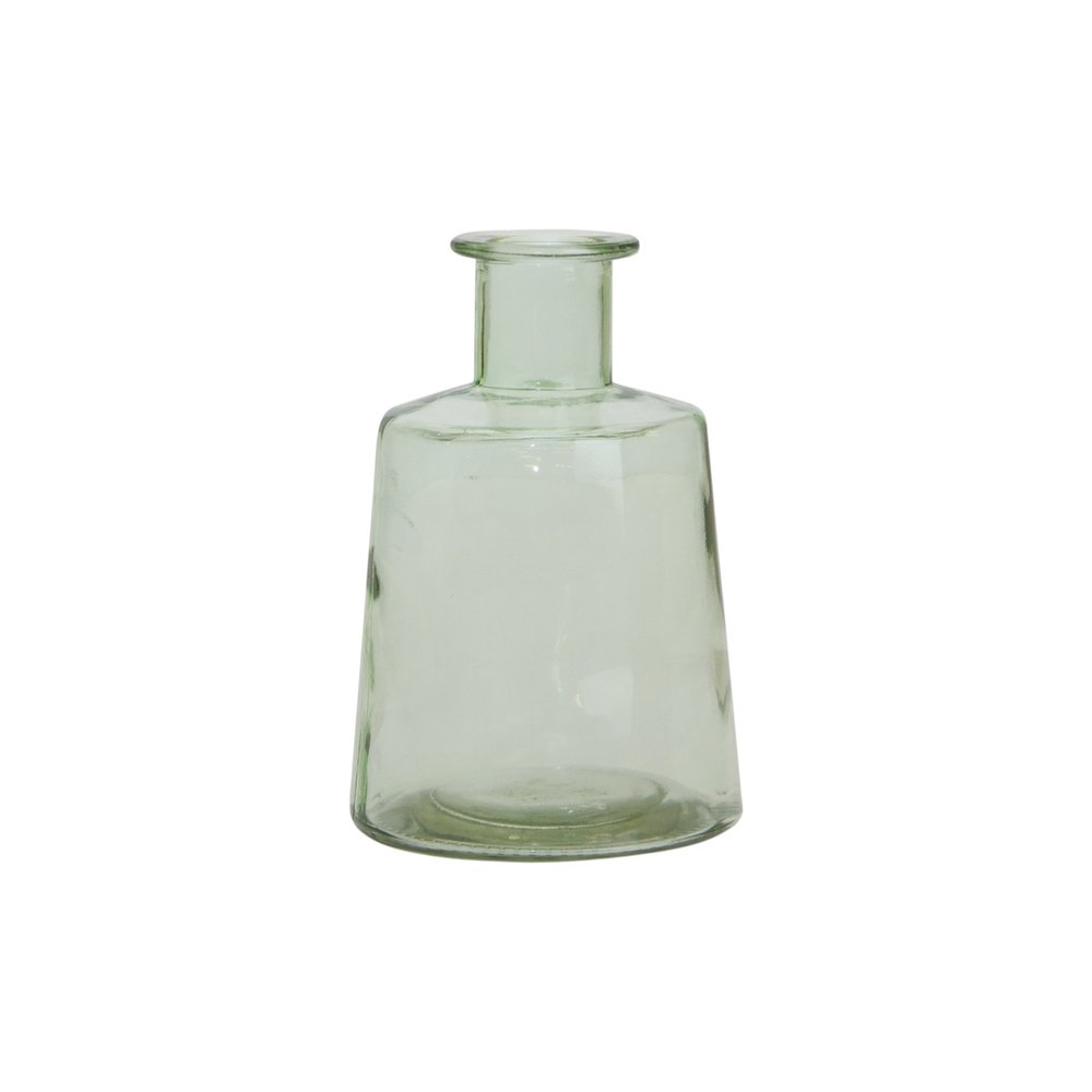 The set of two green round glass table vase is an elegant addition to any home. Crafted from high-quality glass, these vases exhibit a distinct round shape that complements a variety of decor styles. Their island-inspired design brings a fresh and vibrant touch to your space, making them perfect for showcasing floral arrangements or standing alone as decorative pieces. This set includes two vases, allowing for versatile styling options throughout your home. Perfect for accentuating coffee tables or countertops, these vases effortlessly enhance your interior aesthetic while adding a splash of color. Elevate your living space by incorporating this chic and modern table vase set into your decor collection. 9.5-inch h x 4.75-inch w x 4.75-inch d.