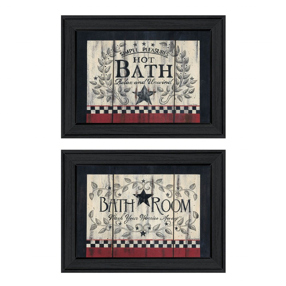 The set of two hot bath 1 black framed print bathroom wall art is the perfect decorative accessory for your home. This print is a visual artistic expression that allows you to decorate your space in style. Reproduced for you on paper, this hanging decorative accent will be a trendy and fashionable way to dress your walls. Hang on your wall to add some up to date fashion and decoration. Instantly liven up your space with this art that brings color and dimension to your walls. 10-inch H x 14-inch W x 1-inch D