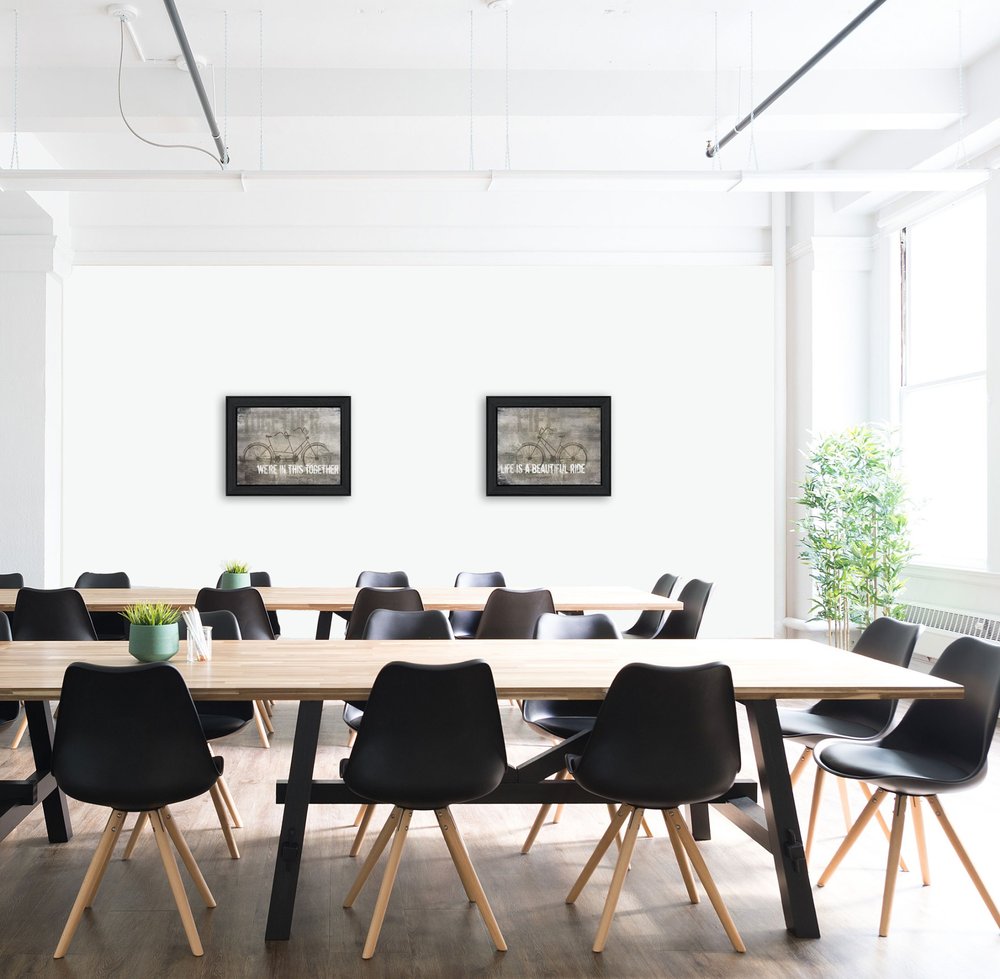 Add an air of fashion to your room and rejuvenate the space with this set of two in this together black framed print wall art. This transportation inspired wall art features a bicycles icon and will bring a refreshing look and perspective to your walls. This print is a visual artistic expression that allows you to decorate your space in style. Reproduced for you on paper, this hanging decorative accent will be a trendy and fashionable way to dress your walls. Hang on your wall to add some up to date fashion and decoration. Instantly liven up your space with this art that brings color and dimension to your walls. 15-inch H x 19-inch W x 1-inch D
