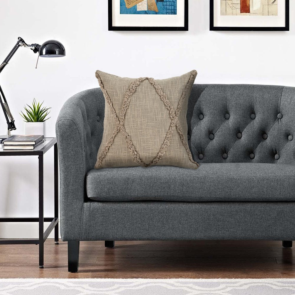 Set of Two Taupe and Brown Diamond Cotton Throw Pillow With Fringes