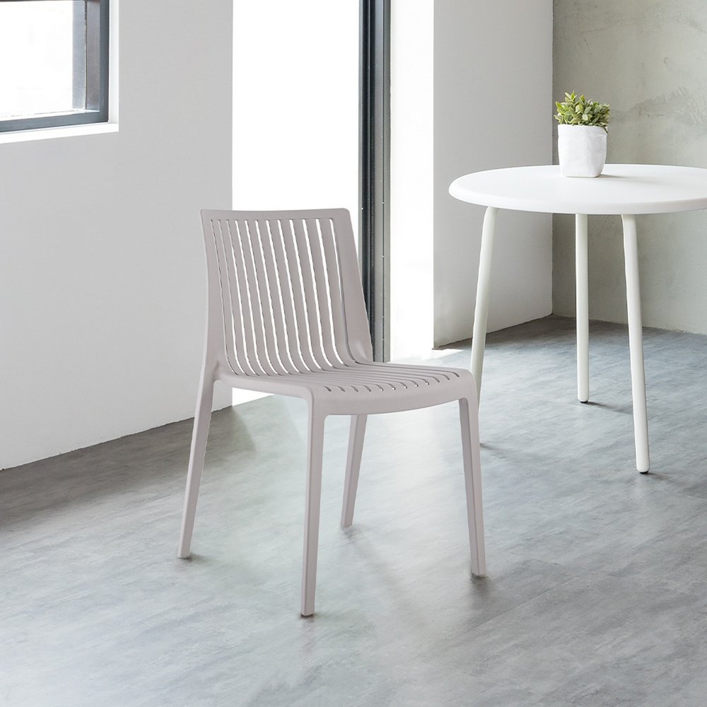Escape the ordinary and embrace the extraordinary with the extraordinary set of two taupe heavy duty plastic outdoor stacking accent chairs, providing a haven of comfort and charm for your outdoor retreat. Safe to use both indoors and out, these chairs are designed to be not only durable but comfortable. An armless design gives this chair a modern vibe. The addition of this chair to your space will allow you to sit back, relax, and enjoy all the great outdoors has to offer. 32.30-inch h x 22.40-inch w x 19.80-inch d.
