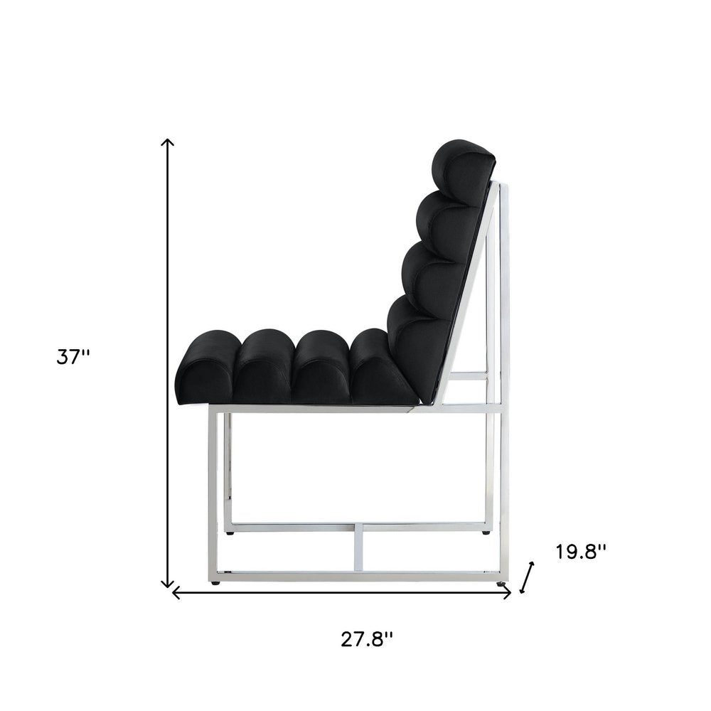 Set of Two Tufted Black And Silver Metallic Upholstered Velvet Dining Side Chairs