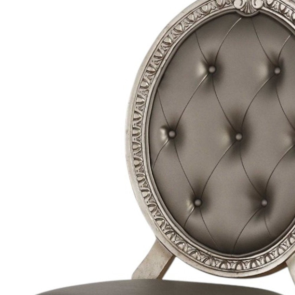 Set of Two Tufted Champagne Upholstered Faux Leather Dining Side Chairs