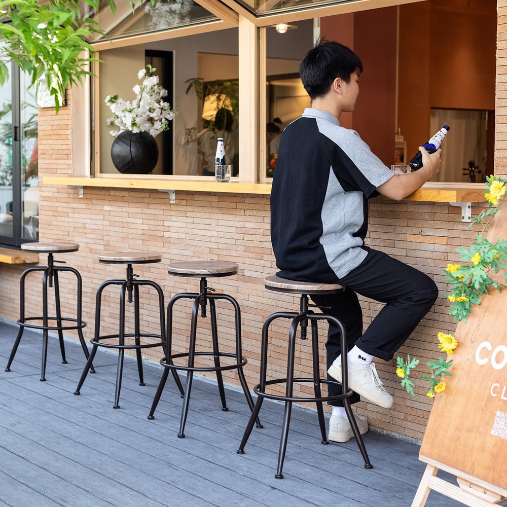 Comfortable enough to sit in for awhile, this set of two walnut and black wood and iron backless adjustable height swivel bar chairs will transcend the look of your room. The walnut manufactured wood seat of this stool is a nice contrast to the high quality, black iron of the base. A backless mixed with a round shaped seat makes this chair both comfortable and fashionable. Designed with a footrest for comfort and convenience. The round shape of the seat combines with a backless to give this chair a comfortable and fashionable look. 30.3-inch h x 15-inch w x 15.4-inch d.