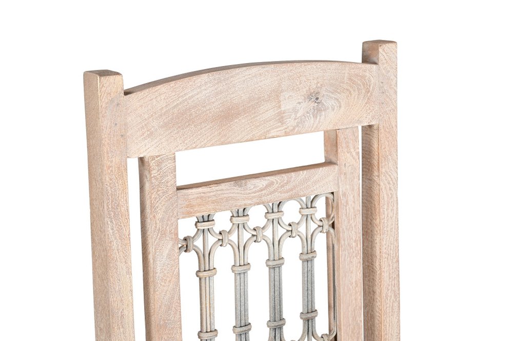 Bring this comfortable set of two white wood slat back dining side chairs to your table to enjoy long lasting quality time with your family and friends. This armless chair has a slim silhouette making it ideal for seating around the table but can also double as an accent chair. The designer cut out back gives this chair its unique style. A washed and distressed finish is used to create a slightly rustic and vintage touch. Dining chairs are a great way to compliment your kitchen or dining room but can also be used in the foyer, hallway, or any room you might need extra seating. 42-inch h x 18-inch w x 18-inch d.