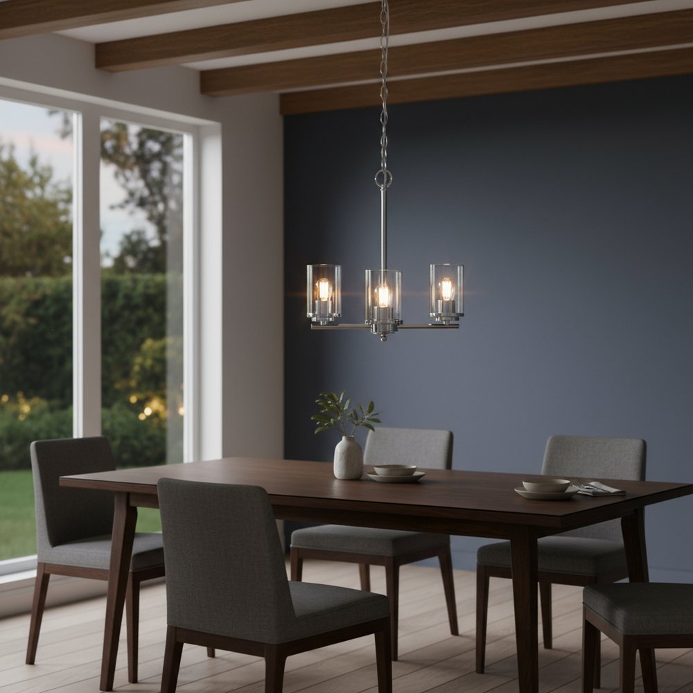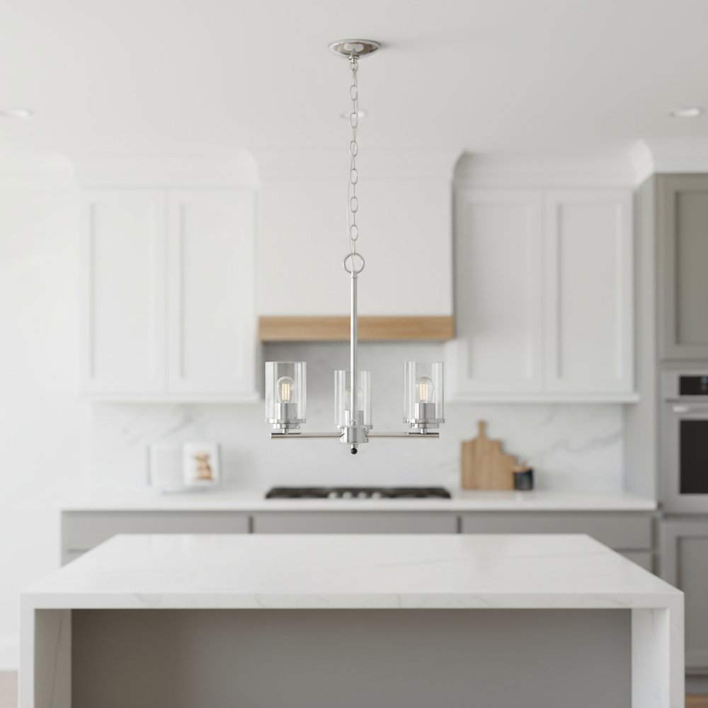 Illuminate your home in style with this silver and clear chandelier three light iron ceiling light with clear shades. A silver and clear finish, gives this light a classic and neutral tone to blend into many decor styles. This light will require hardwiring installation. Get creative and change up the look of any room from hallway, to closet, to office or bedroom with this gorgeous hanging chandelier light fixture. 64.00-inch h x 15.00-inch w x 15.00-inch d.
