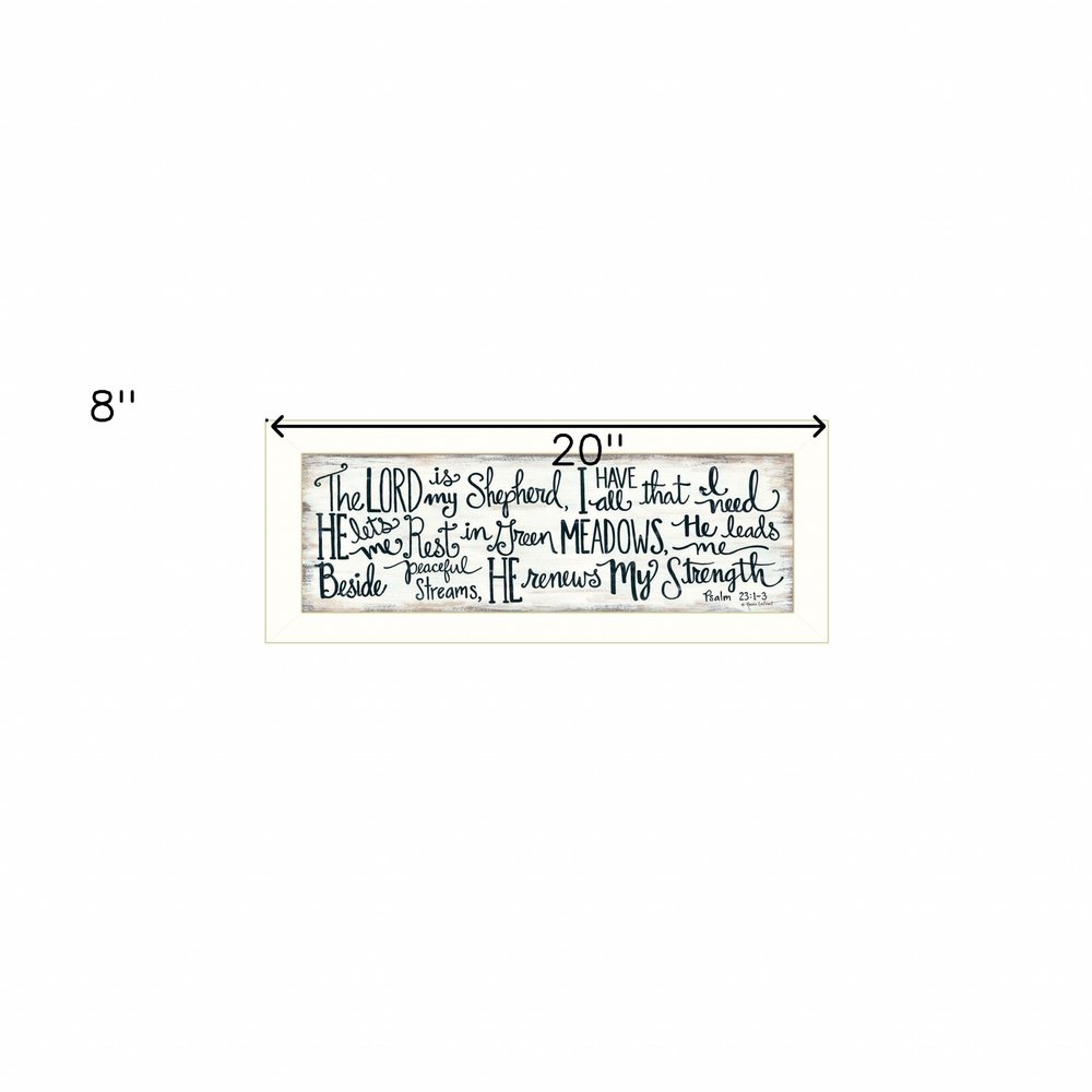 This the lord is my shepherd 2 white framed print wall art will add a beautiful decorative accent to your decor. This print is a visual artistic expression that allows you to decorate your space in style. Reproduced for you on paper, this hanging decorative accent will be a trendy and fashionable way to dress your walls. Hang on your wall to add some up to date fashion and decoration. Instantly liven up your space with this art that brings color and dimension to your walls. 8-inch H x 20-inch W x 1-inch D