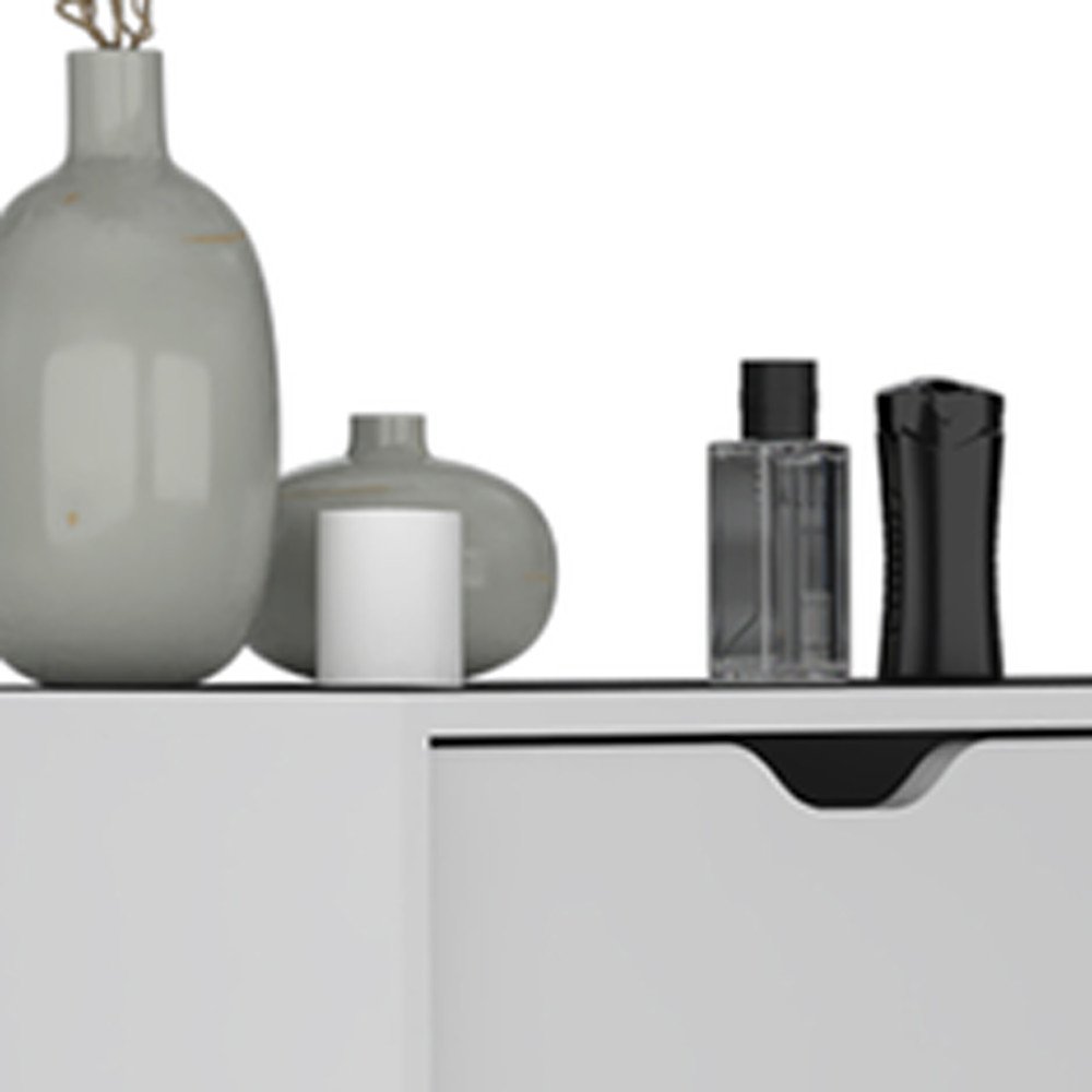 Enhance your room into a visually delightful and highly functional space with this 16" white five drawer combo dresser. This combo dresser gives you the added bonus of both drawer storage and cabinet storage to accommodate various sizes and types of items. Equipped with five easy open drawers for practical and good looking clothing storage. Its a high quality piece, made from high grade manufactured wood. The white coloration of this piece is neutral and will blend easily with most any decor. Removable drawers give this chest flexibility and multi-functionality. 18.90" H x 16.14" W x 14.29" D