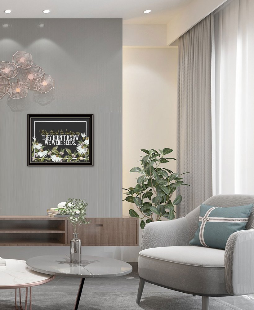 The we were seeds black framed print wall art is the perfect decorative accessory for your home. This print is a visual artistic expression that allows you to decorate your space in style. Reproduced for you on wood, this hanging decorative accent will be a trendy and fashionable way to dress your walls in a rustic and modern farmhouse vibe. Adding this hanging wall art to your space to make your room feel more finished and attractive. Utilize this opportunity to create a focal point in the room with this fabulous wall decor option. 14-inch H x 18-inch W x 1-inch D