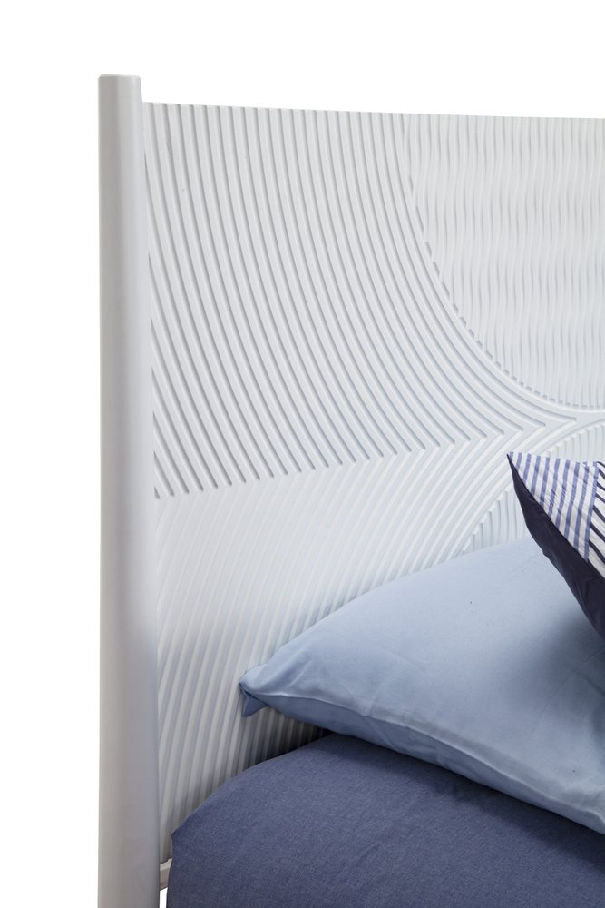 Add a luxuriously appointed bed that will help you create an oasis of comfort and relaxation in your home with this white carved geometric solid wood full bed frame. We spend so much time in our bedrooms, thus making quality craftsmanship and good looks vitally important. This bed will help to create a peaceful environment that will provide restful slumber for years to come. 52-inch h x 81.5-inch w x 58.5-inch d.