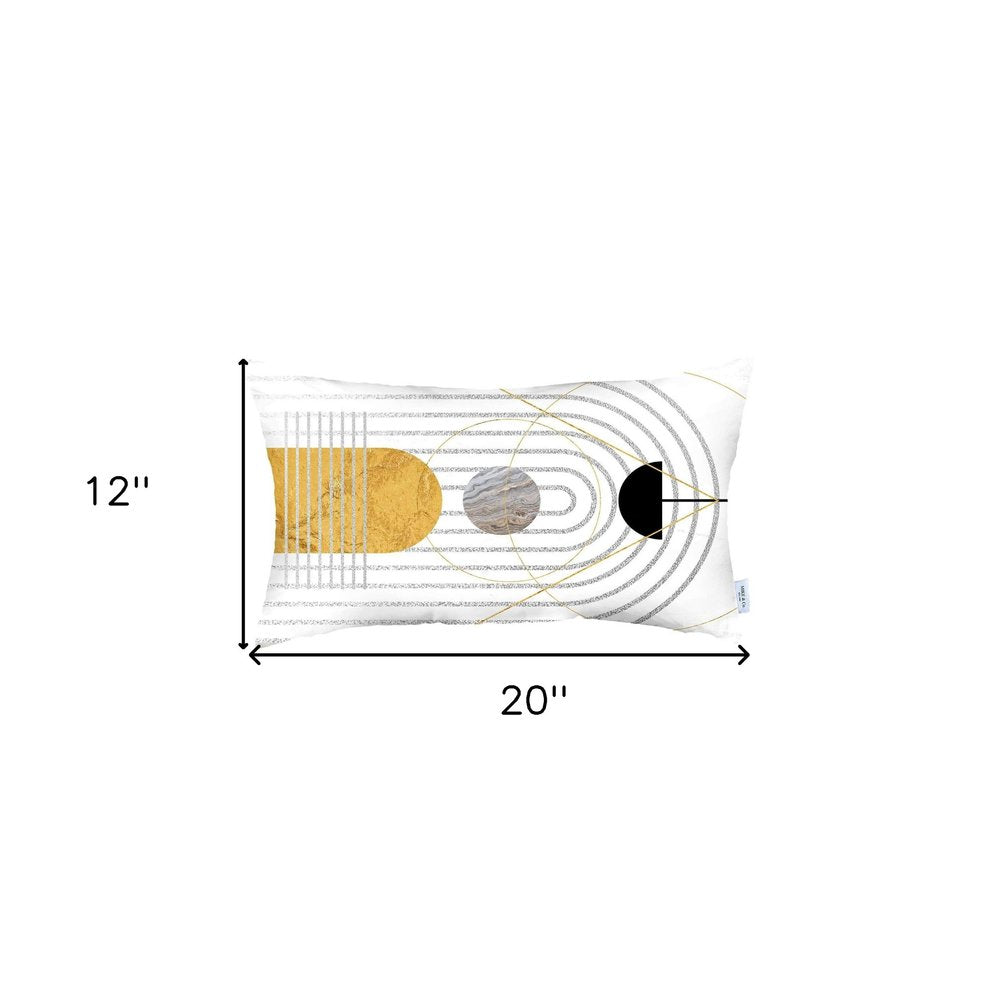 White Geometric Pattern Lumbar Throw Pillow