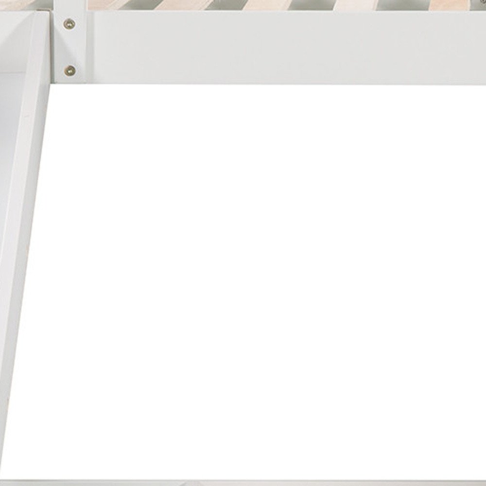 Stylish and super eye-catching, the white twin over twin princess solid wood bunk bed with slide will add a rich unique vibe to children's or teenager's bedrooms. The frame of this bunk is covered in a white hue of casual elegance that suits any kind of style and decor and enhance the presence of your bedroom. This unique twin over twin size bunk bed will shine in any room. This bed features guardrails that protects you from any sudden mishaps. Highly suitable for large families or even for those sudden sleepovers, this bunk bed provides a convenient and flexible option by taking advantage of the vertical space. This unique bunk bed will add tons of character and charm to any space. 49.20-inch h x 77.40-inch w x 88.90-inch d.