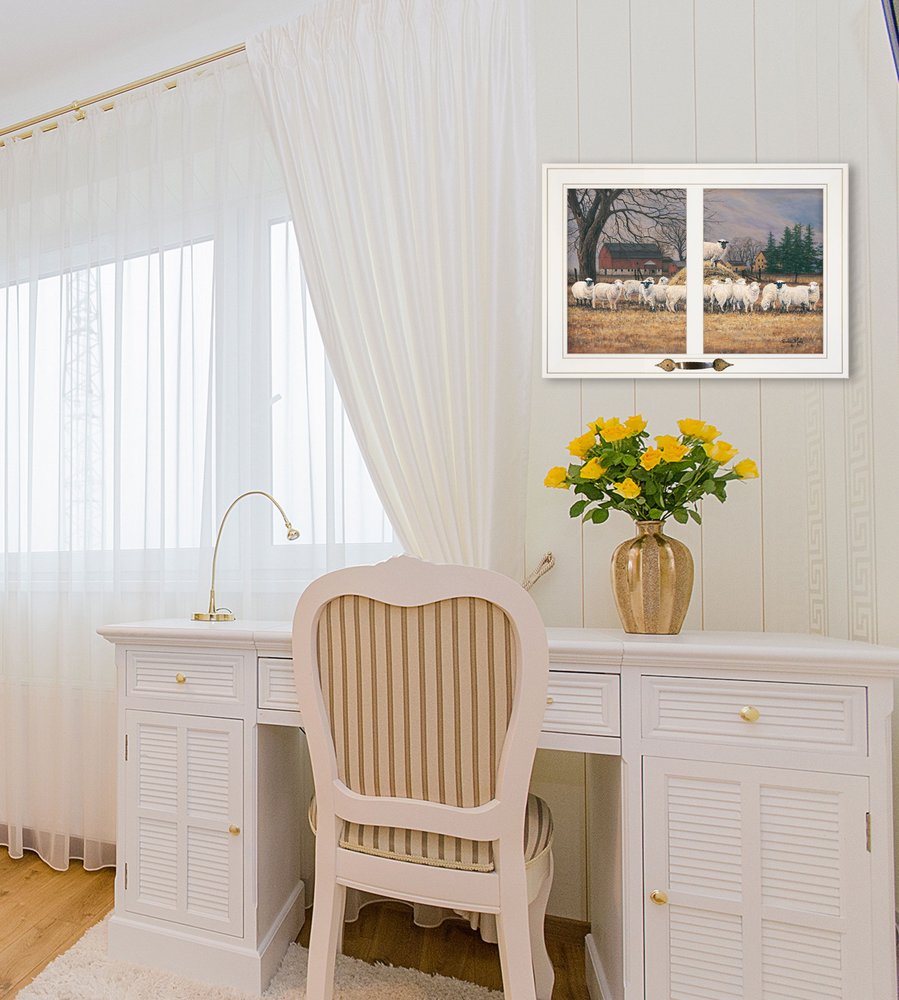 This wool gathering 2 white framed print wall art will add a beautiful decorative accent to your decor. This print is a visual artistic expression that allows you to decorate your space in style. Reproduced for you on paper, this hanging decorative accent will be a trendy and fashionable way to dress your walls. Hang on your wall to add some up to date fashion and decoration. Utilize this opportunity to create a focal point in the room with this fabulous wall decor option. 15-inch H x 21-inch W x 1.5-inch D