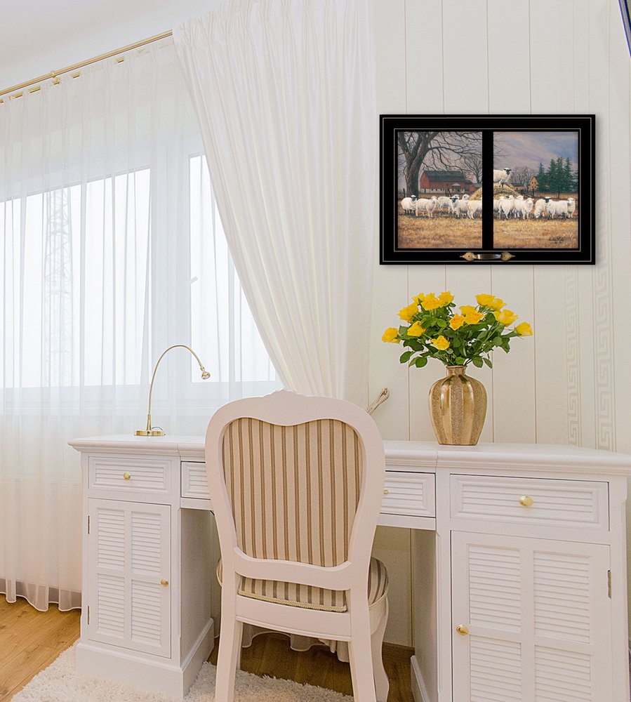 This wool gathering 3 black framed print wall art will add a beautiful decorative accent to your decor. This print is a visual artistic expression that allows you to decorate your space in style. Reproduced for you on paper, this hanging decorative accent will be a trendy and fashionable way to dress your walls. Adding this hanging wall art to your space to make your room feel more finished and attractive. Instantly liven up your space with this art that brings color and dimension to your walls. 15-inch H x 21-inch W x 1.5-inch D